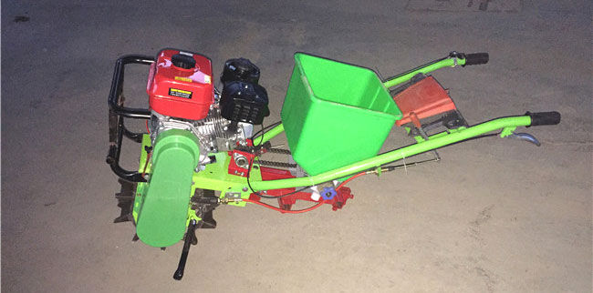 多功能汽油施肥播種器是旱田使用的小型機械。適用于所有旱田農作物壟間作業(yè)。是廣大農民朋友實現農業(yè)機械化的首選產品。    選配正規(guī)企業(yè)生產的變速箱,汽油機為配套動力。易啟動,輕便耐用。整體板設計,一次成型,堅固耐用。加粗手把。人性化的.手油門設計。新款增添了高低空檔掛擋離合功能獨特的主輪設計不溜溝,揚塵少,減少向變速箱漏土及纏草。主要功能:施肥;播種;松土;除草;開溝;扶壟;培土等